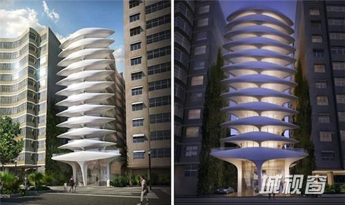 这次的设计较扎哈之前的作品来说,算是中规中矩的一次尝试。尽管投资商巴西企业家奥玛·佩瑞思(Omar Peres)表示对于扎哈的设计不作任何干预,但考虑到当地严格的建筑规划要求,扎哈还是不得不在建筑高度和与周边建筑景观和谐度等方面对自己的设计做出调整。现在整栋建筑高度设定为41.5米,在造型上也并未过于夸张。