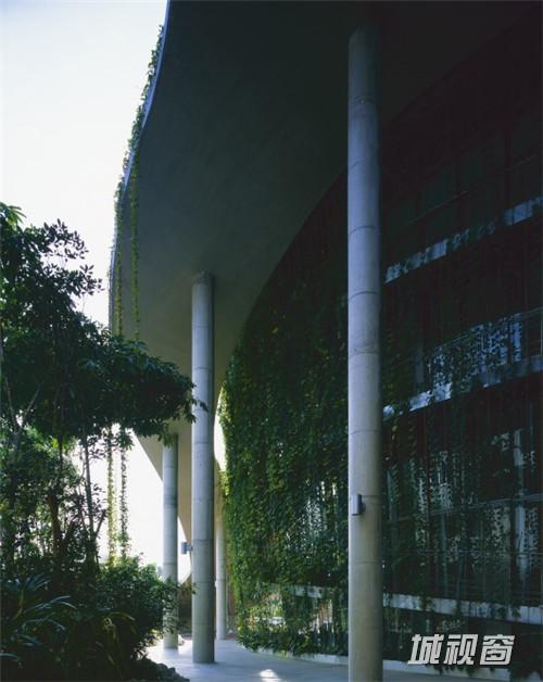 在计算机模拟的指导下,我们可以预测通过拉伯式花纹图案形状的反射板所反射光的量。这个多层建筑设有办公室,这栋楼与东西轴线对准以最小化外壁表面太阳辐射的影响。沿高层建筑的周边的是一个与地面连接的连续步行斜坡,可以供工人锻炼和提升他们的身体健康。建筑立面拥有蔓藤系统,这些蔓藤通过形成一道垂直的绿墙来隔离太阳辐射。自然通风是通过从多层建筑到低层空间创造的空气流实现的。将自然与自身和周围融合入一体,这个工厂就是这种可以连接周围环境和背景的自然工厂。