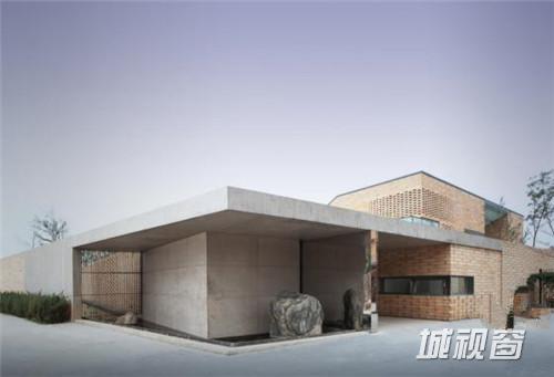 凹舍-冯大中艺术馆·伏虎草堂是辽宁省首座以艺术家名字命名的个人艺术馆,位于本溪市,建筑面积为3000㎡,分为工作室、公共展厅、居住区等部分,是一个混合式的空间。此建筑旨在解决快速发展的都市节奏与人文内心之间的冲突,希望在建筑中创造一个静态的内部世界,再由内而外展开对外部自然的对话,并发挥出建筑的全部潜能。既不是公共建筑,也不是完全意义上的私人空间义。这就要求该建筑既要提供相对安静的创作与居住空间,还要给来访者以一种恬静而深邃的文化感受。建筑被设计成内凹的方形“砖盒子”,屋面凹形空间向中心汇聚,与3个室内庭院连接成了一个整体。在这个方形“砖盒子”中,通过书院、竹院、山院的插入使得其内部空间变得丰富而有诗意,形成了“屋中院”,使建筑成为一个外部严谨厚重而内部灵动的独立世界。插入的内院像灯笼一样点亮着整个室内空间,自然光给建筑带来了无限的戏剧性。结合东北寒冷地域特征,专为该建筑定做了色彩温暖且有着良好保温性能的600㎜大砖,并且试图让这种厚重且粗矿的材料呈现出其原有属性的相反方向。为此,将砖像拉伸的网眼织物结构一样进行垒砌,放眼到整体便形成了建筑从不透明到透明的渐变,获得了新的质感与张力。外院的入口处是双层院墙,外实内虚。外墙形状是用地决定的,内墙为“漏”墙,它与建筑平行,在不规则的用地空间内二次划分为方正空间,双墙之间便出现微妙的夹角,形成了空间的厚度与量感。渐变镂空的内墙再一次切合了传统漏窗一样的功能和空间意境,不同的是创造了新的空间质感。