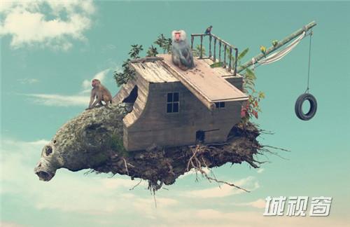 这些超现实主义的画面来自西班牙摄影师兼艺术家Rafa Zubiria。Rafa Zubiria利用其完美的摄影技巧与高超的后期处理技术将房子等事物浮在了半空,这一切看上去是那样真实。Zooo(空中动物园)系列描述的是小动物漂在空中的家。这里安全,快乐,没有人类的打搅与猎杀。No way home(归家无路)系列表现力人类的住宅浮上来天空,住宅只剩下上半部分,让人找不到家的入口……Rafa Zubiria创作的这两个漂浮系列作品,放在一起,发人深思…