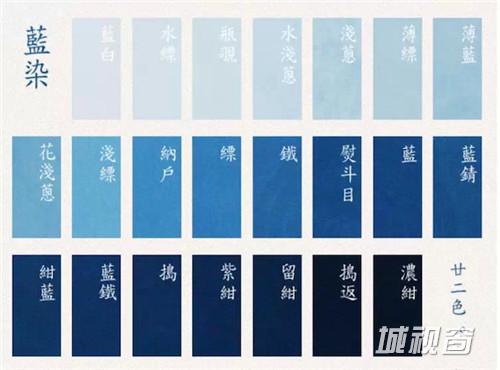 蓝染的颜色,一定有人不屑一顾的说蓝染无非就是蓝靛青色而已,其实没错但也不尽然。中国种植的蓝多为蓼蓝、菘蓝(大蓝)、琉球蓝(山蓝)、木蓝(印度蓝),相比日本就要单纯许多,多以蓼科蓼蓝为多。但并未因此而限制了蓝的色彩,细致的日本人不单划分出10色基本色,更发展出多达22色的蓝染色,逐一取名表达出各自不同的意思。由浅至深分别为:“蓝白,水缥,瓶覗,水浅葱,浅葱,薄缥,薄蓝,花浅葱,浅缥,纳户,缥,铁,熨斗目,蓝,蓝锖,绀蓝,蓝铁,捣,紫绀,留绀,捣返,浓绀”。