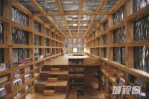 篱苑图书馆的美在于其自然,坐落在北京怀柔区雁西镇的山水间,是一座被干枯树枝包围的阳光玻璃书屋。整个图书馆充满玻璃设计,外墙由村民烧火的木棍搭建,采用的是钢木结构。自然光可以透过木头缝隙照进玻璃房子,营造了浓郁的书卷气息。