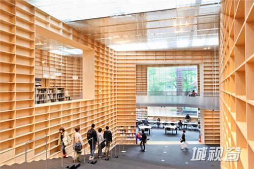 武藏野美术大学图书馆位于日本东京,它走进大众视野主要是因为日本青年建筑师藤本壮介设计的新馆。藤本壮介和他的团队用木书架和玻璃外观打造了最简洁的图书馆,六米高的墙都是木书架构成的,整个空间除了类似桥的阅读区域,没有多余的设计。即使在图书馆外部,书架墙理念继续延续。