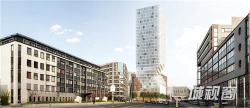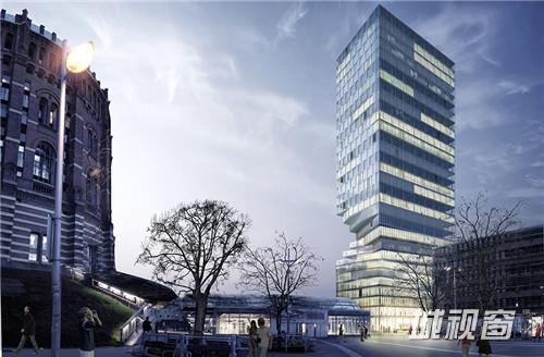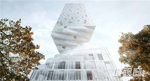 “小蛮腰”塔楼的较低楼层发生优雅的扭曲。著名的Gasometers地区位于机场和市中心之间,这一区域亟需进行城市更新。建筑基地紧邻地铁站,而建筑规范最初把可建高度限定在75米,而平面也应该是一个梯形。MVRDV提出了一个更紧凑有效的正方形布局,结果减少的占地面积让建筑体量变得更高。为了交换这些在建筑体量和高度上特许权,MVRDV把建筑阴影对周边地区的影响降到最低。