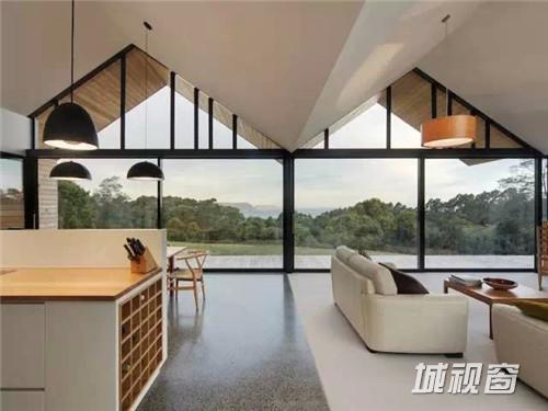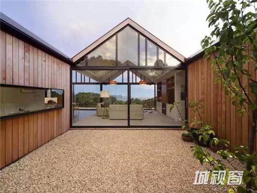 Penninsula House 这个住宅的前身是一处农舍,被改造成了四合院。房子朝向塔斯曼岛和海洋。进入房子之前会经过一个庭院,院子里面种植了树木和花草,还可以看到海景。三个三角形的屋顶,每一个都具有特定的函数换算,与庭院形成不同的视觉景观,越过整座住宅覆盖了户外生活空间。