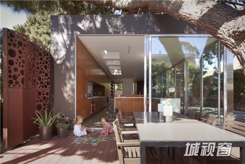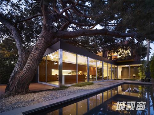 这栋2700平方英尺独户住宅的设计灵感来源于场地和周边环境,设计参考了场地中标志性的松树,作为施工过程的一部分,项目在场地中重新布置了另外两棵树。松树主干直径近5英尺,树冠超过六十英尺宽,所以很明显,它是这块场地最显著的特征(几乎覆盖了整个地块)。