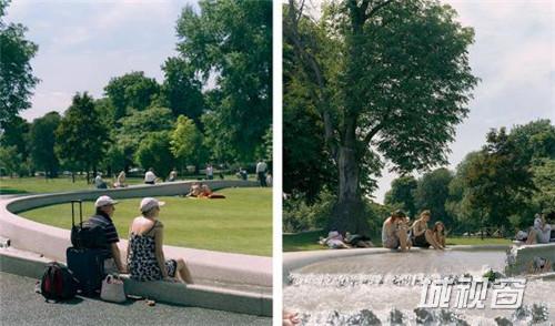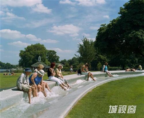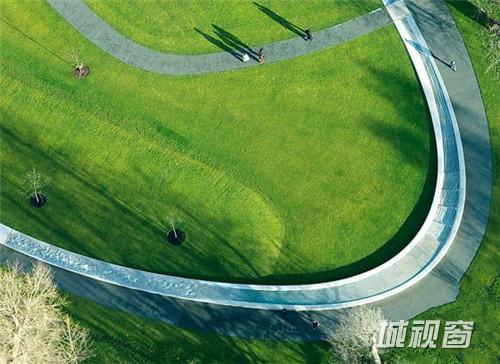 英国伦敦海德公园内的戴安娜王妃纪念泉可谓是多年以来的经典水景观项目。该喷泉自2004年修好后,仅2005年便获得超过200万人的拜访,成为当年伦敦最热门的旅游景点。设计的理念基于戴安娜王妃生前的爱好与事迹,以 'Reaching Out - Letting In' . “敞开双臂--怀抱”为概念,设计了一个顺应场地坡度的,在树林中落脚的浅色景观闭环流泉。整个景观水路经历跌水,小瀑布,涡流,静止等等多种状态,反映了戴安娜起伏一生。