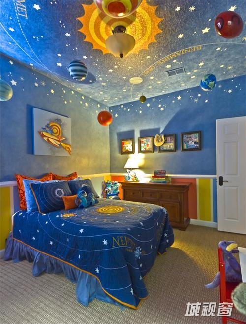 室内屋顶可根据孩子性格活泼程度来选取适合的造型吊顶。如儿童房的造型吊顶可以像星空一般装饰屋顶,也可以用木质吊顶打造自然生态感。
