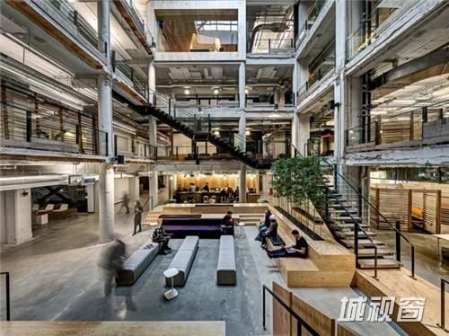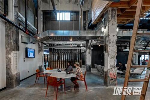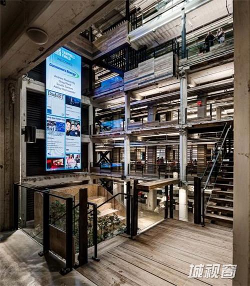 Lowe Campbell Ewald广告公司位于底特律的办公室,建筑本身有着约100年的历史,长期的空置导致内部有些年久失修的破败感,Neumann/Smith Architecture并没有大加改造使它改头换面,而是在保留历史元素的基础上,进行翻修,内部许多材料都是回收的二手家具,包括从别的谷仓拆除下来的木条用作了前台的柜子和半镂空的洽谈室,第一是节约了成本,第二是也顺应了建筑的整个历史。