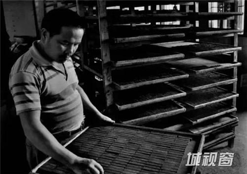 模具中成形后,将墨条取出,放到木板上摊开晾干。晾墨房要保持恒温恒湿,风不能吹,阳光不能晒,火不能烤,还要依据季节的变化防裂防霉,同时要定期翻面,以免变形。