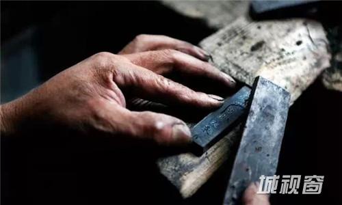 墨锭晾至三成干时,就要进行锉边处理。墨锭在模具中挤压后,边角会有一些毛边,锉边就是用工具将墨锭边角上毛边打磨、修平,除掉瑕疵。
