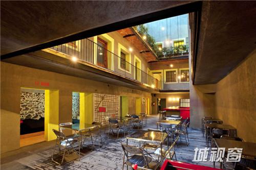 这座由17世纪建筑改建的旅馆具有浓浓的墨西哥式豪华风格。其位于墨西哥阿兹克老城区的心脏,使用了阿兹克族宫殿和后来西班牙人修建的教堂的部分石头。红色的火山岩墙面,石材框架,还有手工预置水泥砖都是这个多庭院的石材旅馆的特色。原有建筑被保留,并融入两种旅店概念:精品式酒店和青年旅社。旅店的内庭院多被环廊围绕,院子的分布使得酒店获得更多的自然采光与通风,减少了对能源的消耗。酒店的客房多数设置在二层和三层,内部装潢古香古色,家具为定制,灯具十分复古。红色火山岩墙面是内部装饰的主角,这种颇具贵族气息的材料奠定了房间的基调。
