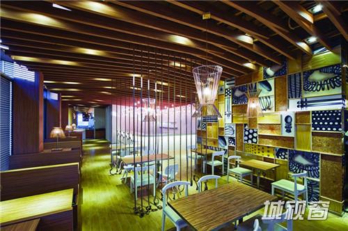总部位于香港的工作室全景最近完成了酒屋料理指南歌手,一个新的日本餐厅坐落在新近开放的食品和娱乐中心”10月湾”在中国深圳。一个主要场景的“餐厅”的制定是为了给一个“家”的感觉,将传统酒屋料理指南的就餐体验到一个新水平的潮流。起自行车的不同发现对象提供独特的休閒用餐体验,整个空间。建筑重新诠释传统“日本酒屋”是由倾斜的木材屋盖结构在棕色画开天花板。为了使用瓶&钨灯泡被重新配置成为吊灯高于木材板凳座位数&铁板烧计数器分别。白色餐桌椅的多种风格设置与木地板和提供随机但一致的模式一般暖色调的环境。吊顶绳屏幕提供灵活分隔到该地区。各种座位模式的摊位,表2 / 4 / 6/8和介绍了VIP房,以满足不同客户的需求。超大黑色和白色的画面是,日本食品collaged炊具和芥末黄色调色板在特性创建一个温暖&时尚的墙壁身份这个新品牌和帮助增加顾客的胃口。专门设计的悬而未决的和表羊羔竹子做的筷子完成了舒适和温暖的就餐体验。
