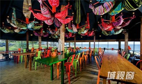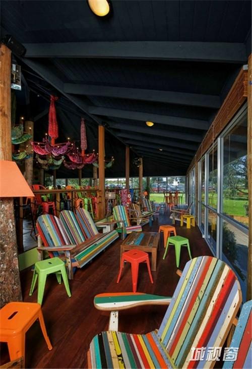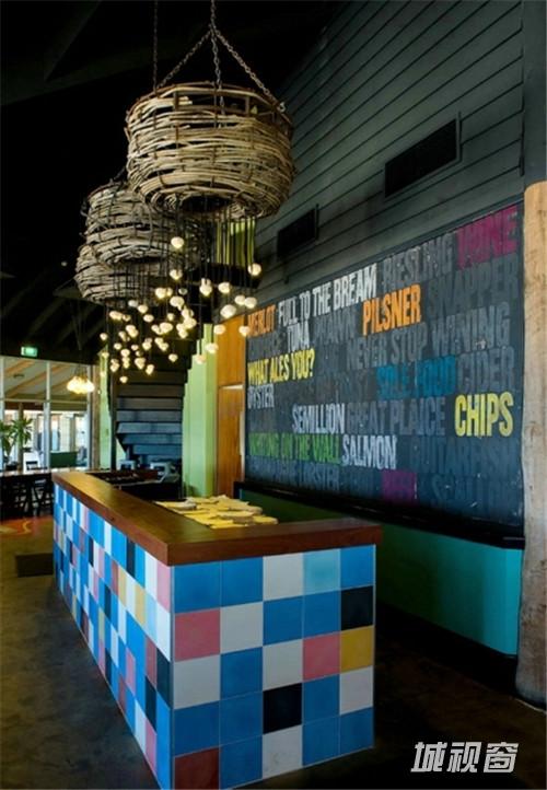 这是一间位于澳大利亚珀斯的鱼市海滩酒吧。设计师将色彩发挥到淋漓尽致,满眼绚丽的色彩,构成了一个丰富多彩的室内空间。城市海滩是珀斯最负盛名和最为原始的海滩之一。一个偶然的机会,店主Joe和John接手了城市海滩前栋拥有十年历史的建筑内一家陈旧的餐厅。接手后,他们便委托Paul Bumham建筑设计事务所对其进行修缮和改造。