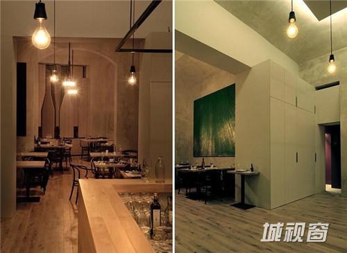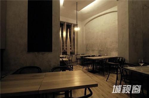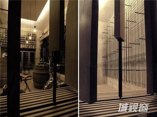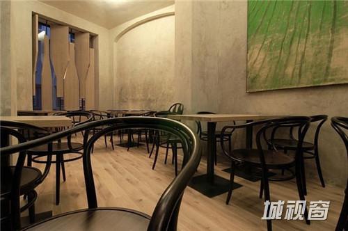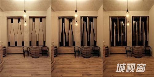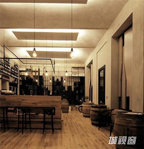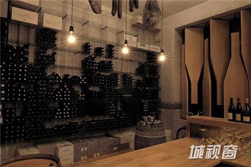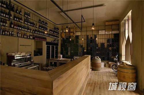 这家来自于捷克的酒吧,从店外看上去,仿佛是一个巨大的酒窖,里面藏满了美酒。设计师在设计时抓住了品酒者们最根本的愿望:享用最纯粹的原味。于是在设计时,将商店的橱窗改造成酒瓶状的旋转窗户,从店外看起来,即使不用任何宣传与促销海报,也足够引人驻足。店内的橡木桶、木桌、木吧台以及存放葡萄酒的钢筋货架,加上一副葡萄园画作,充满了原木与自然的气息。只怕在这样的酒吧里,酒不醉人人自醉了。