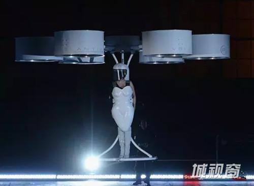 其实,谢炜龙还给Lady Gaga设计了另外一套衣服。2013年11月10日,Lady Gaga在纽约布鲁克林发布最新专辑《Artpop》,走红毯穿的长裙外饰(上图)就出自谢伟龙之手,而发布会上那款会飞的裙子(下图)也是来自于谢炜龙所在的Studio XO工作室。不论是红毯长裙,还是这款会飞的裙子,都是运用了3D打印技术制成。
