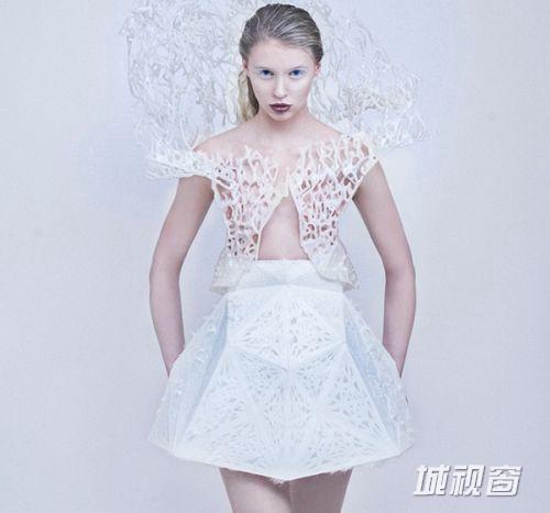 设计师Michael Schmidt和Francis Bitoni设计了3D打印晚礼服,找来了著名时尚明星Dita Von代言
