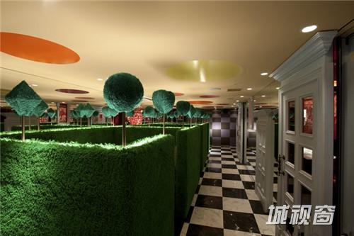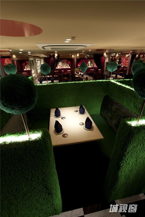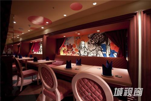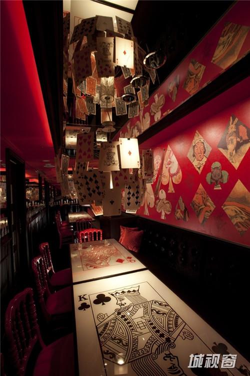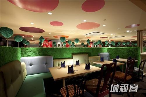 这个位于日本东京的爱丽丝魔法世界餐厅希望为大家展示“多场景的幻想。” 在这里不同的空间区域有着不同的故事场景。入口的大书背景墙,让前来的人感觉自己变小了,绿色的箱座代表着王牌王国,秘密派对“王牌房”采用了红色和黑色。挂在天花上的王牌吊灯相当有趣。主餐区的Madhatter’s teaparty区域非常有惊喜,所有的座椅都不一样,这里的所有,包括灯,茶杯,还有菜色,都让人感到在进行一场神奇的旅行。心餐厅里面有一个心状的餐桌和由好多心状片装饰组成的吊灯,座位则是粉色,这里非常受女孩子们欢迎。 所有区域都不一样,都有惊喜,欢乐。餐厅的多变让客人在这里一次又一次的享受。这正是幻想餐厅的真正价值。
