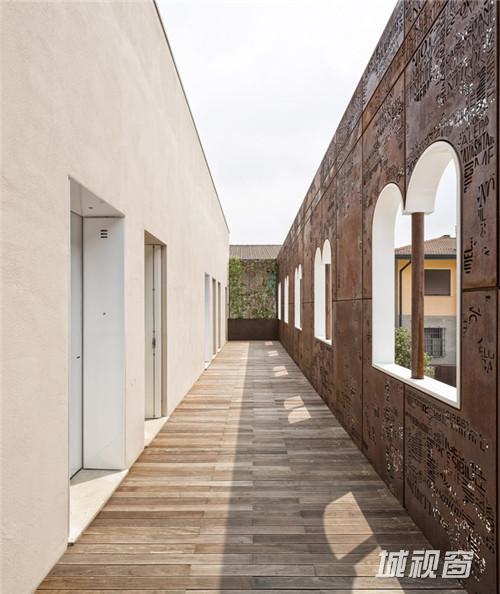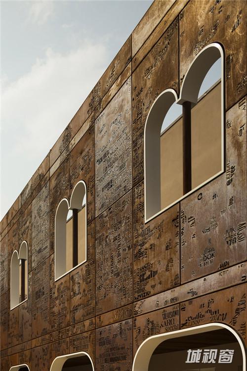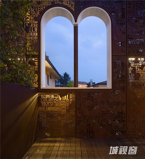 成立于2011年9月的3ndy工作室最近设计了一个有着超美耐候钢外表皮的公寓。场地的原有建筑在大火中被损毁,设计师重现了过去建筑的尺度,以此表达纪念。一面表皮是有着跳耀的开窗造型,而另外一面耐候钢表皮则邀请了雕塑家乔治米拉尼机型设计,米拉尼在耐候钢的表面雕刻出字母,精心挑选的丰富字母及符号让表面极度富有内容,同时达到审美和文化上的和谐。