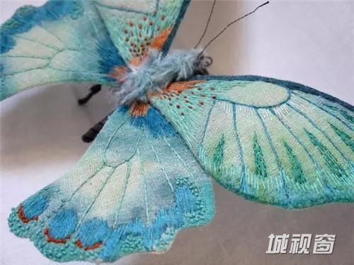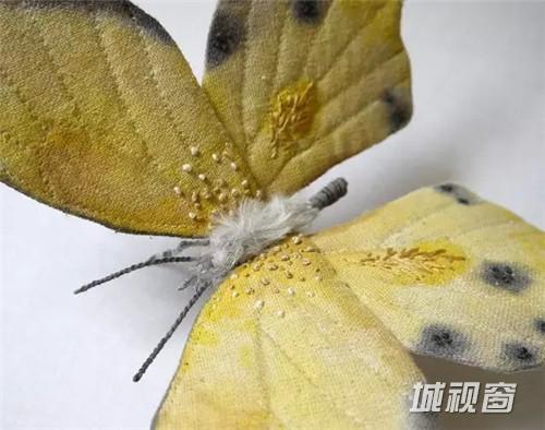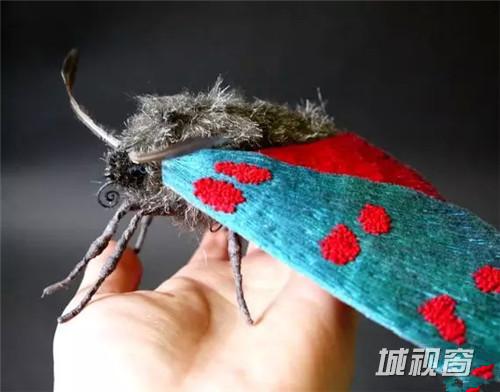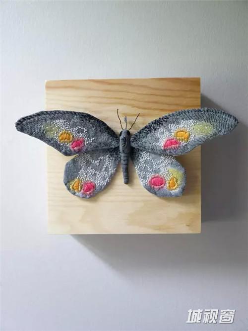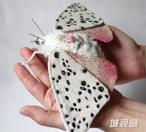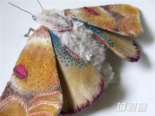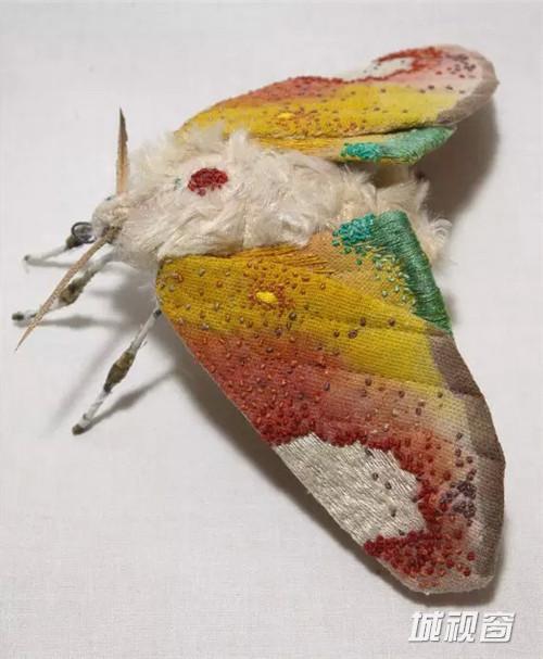 Yumi Okita是一位居住在美国艺术家,她创作了一系列飞蛾、蝴蝶等昆虫作品,这些作品基于手工染印上色的布料结合了刺绣等技能手法,做的惟妙惟肖,颇为诱人。
