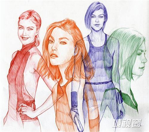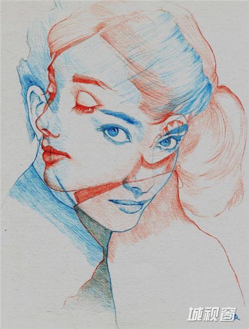 圆珠笔完成的时尚插画