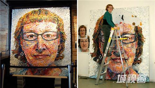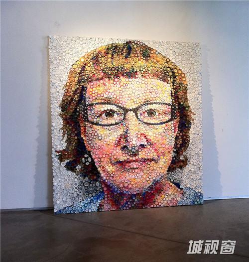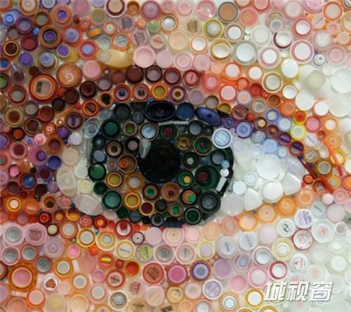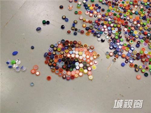 关键字:艺术家,塑料瓶盖,城视窗,精美壁画
