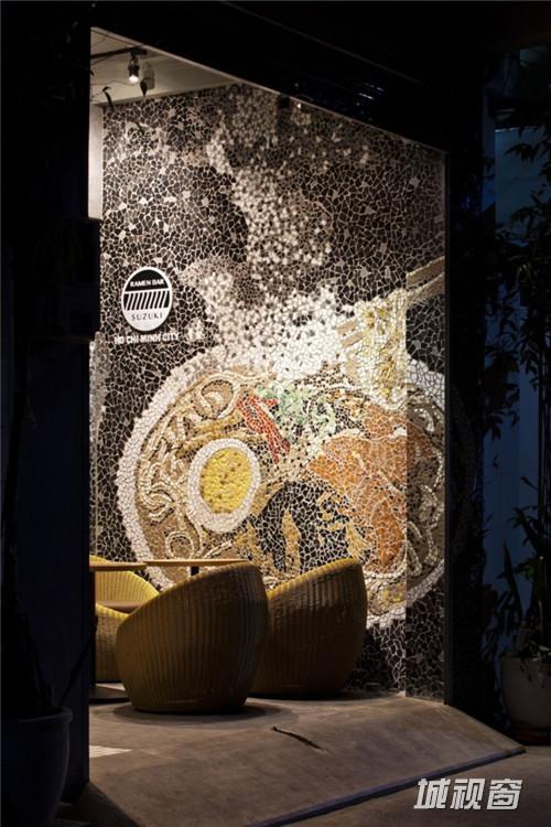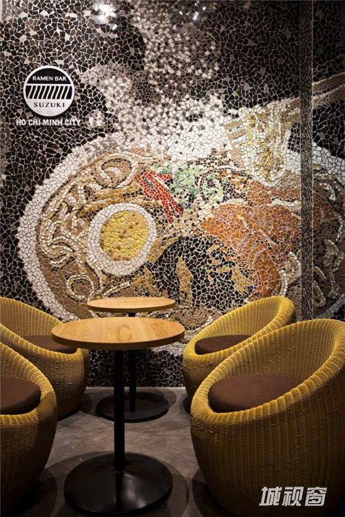创意马赛克墙绘:胡志明市个性的拉面馆设计