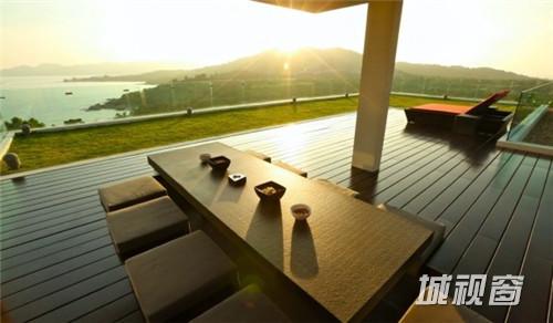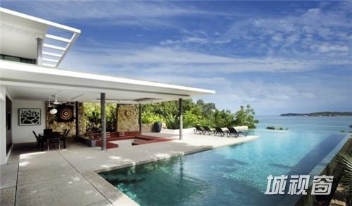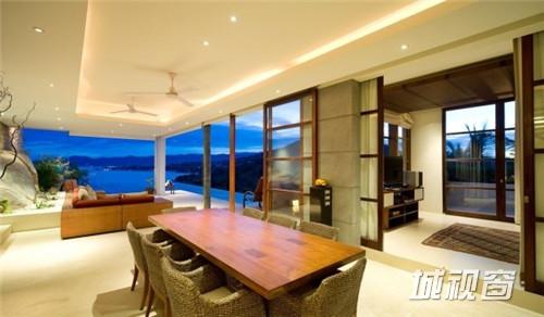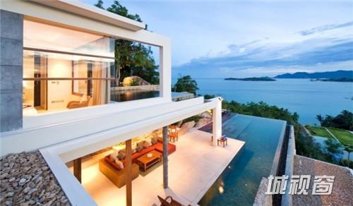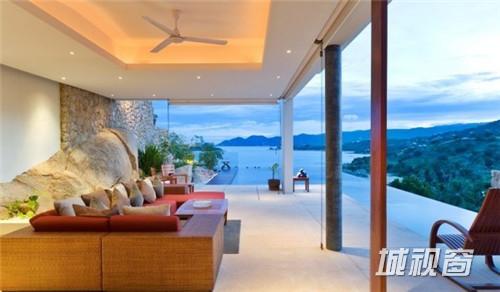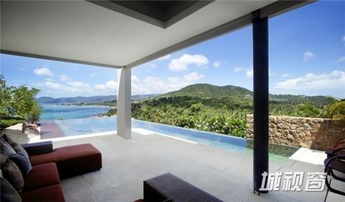 这座位于泰国苏梅岛的现代度假别墅Villa 5,十分亲近自然,是Samujana房地产公司旗下的资产。周围有白色沙滩、珊瑚礁和椰子树。总共有四间卧室和L形的游泳池,既可以做多人泳池,也可以做家庭旅行度假用,泳池的旁边还有休闲椅。在这个别墅里,最吸引人的地方莫过于可以欣赏边看珊瑚湾边欣赏日落美景,有一张容纳8个人吃饭的石桌和供休闲娱乐和烧烤的草坪。其它设施还包括高科技私人影院和设施齐全的健身房。这座1600平方米的别墅每晚订房价达到1000美元。