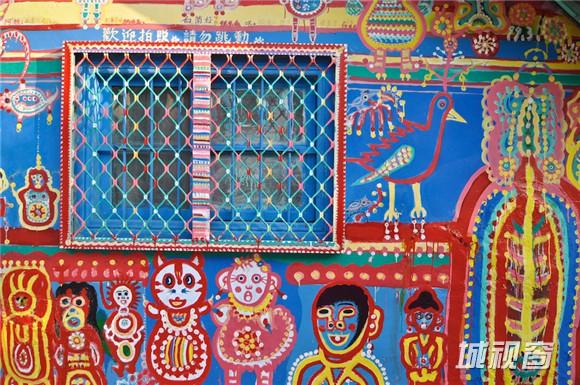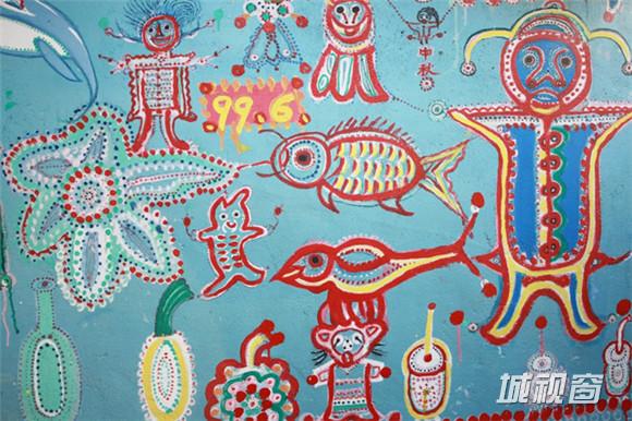 为打发时光,老人开始用油漆在自家住宅前的墙壁上涂涂抹抹,后来,逐渐画到了邻居家的围墙和院子里,再后来,整个村落巷弄的地面、墙壁、门窗都被他笔下色彩艳丽、俏皮夸张的彩虹、花朵、动物、名人肖像等画作铺满。