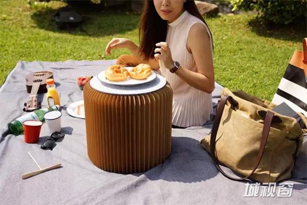 napkin是一款非常便携的户外创意餐桌,在折叠起来的时候它就是一个兜子的样子,只要你展开它就会发现设置还是蛮齐全的,放饮料杯的孔,放餐具的小空间一应俱全。