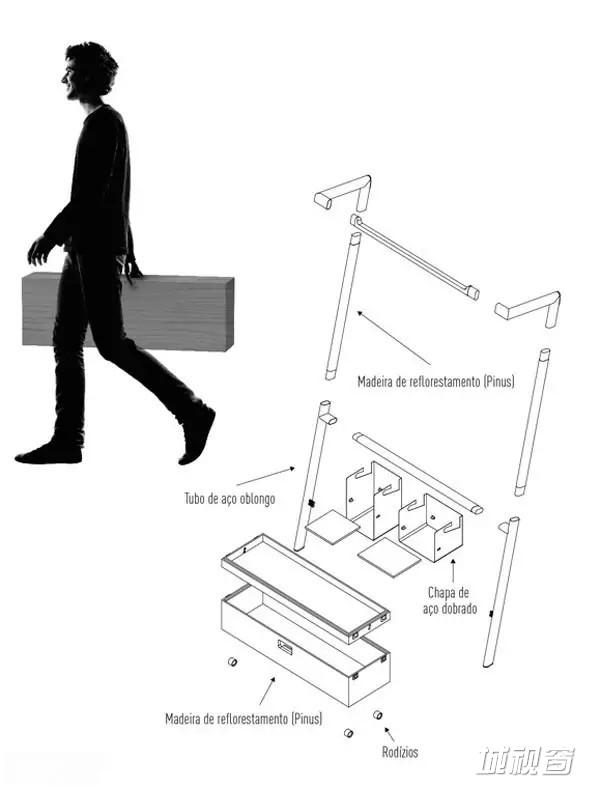我们这些悲催的80后大部分都整天混迹并穿梭于不属于我们的城市之中,没有房子这个“奢侈品”使我们成为了城市中居无定所、逐水草而居的城市游牧族。既然选择了游牧就要有像蒙古包一样强大而且便携的东西能够随着我们随时迁徙,Arara Nomade便是这样一款超强的便携衣架。设计师André Pedrini和Ricardo Freisleben设计的这款产品不但能够满足日常衣物和鞋子的简单收纳与盛放,还可以轻松拆卸然后带走。