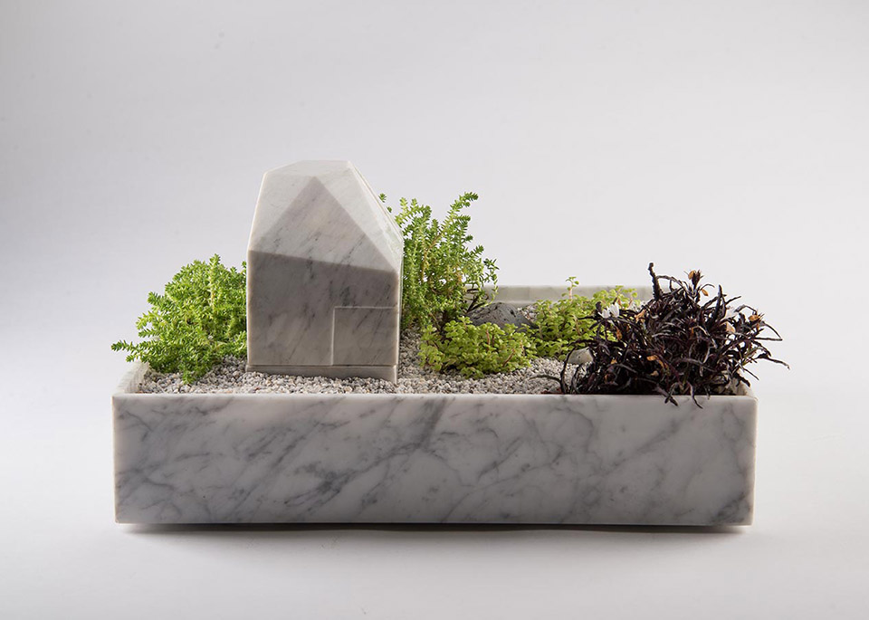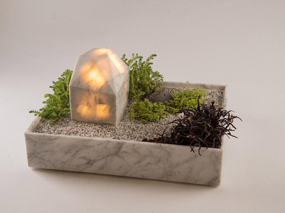 PECA的首席设计师Caterina Moretti给gooood分享了这款梦幻柔美的桌上花园。花园里有一座极薄大理石搭建的白色小屋,和屋外细腻的沙地以及精致可心的小小植物。