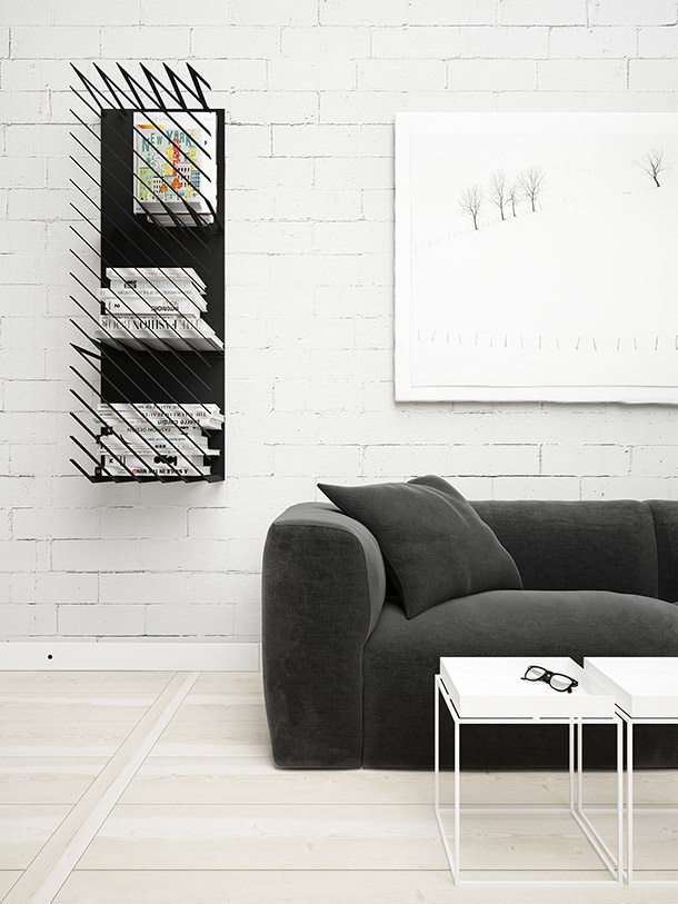 HASH是一款可以自由组合的书架,书架一面是黑色的实钢,另外三面是具有厚度的黑色片钢。