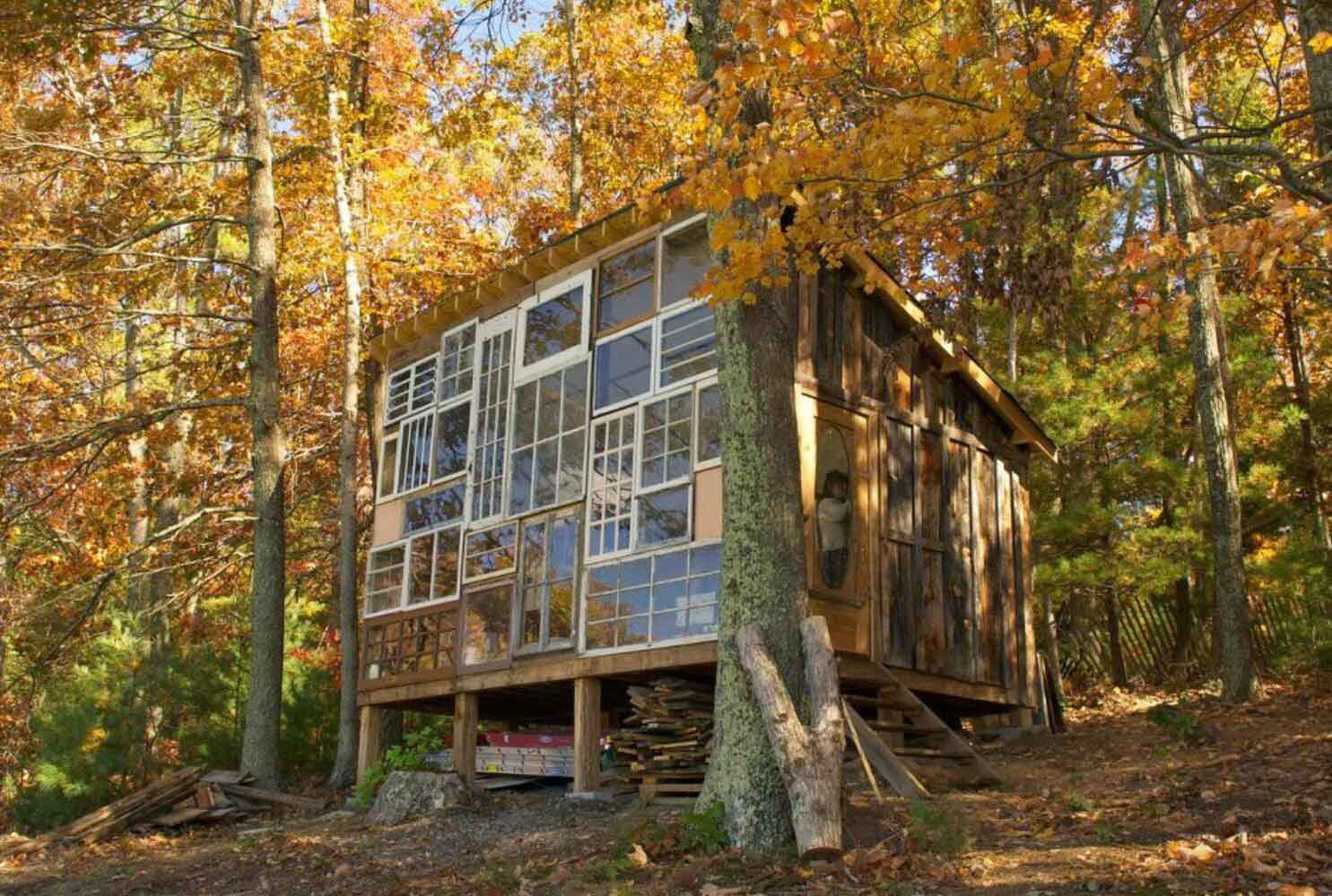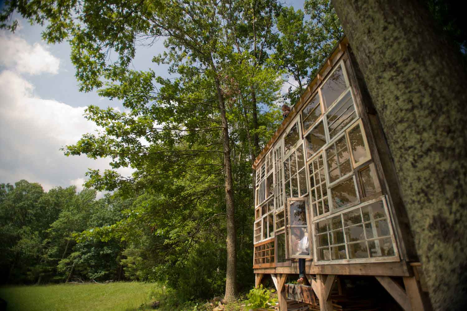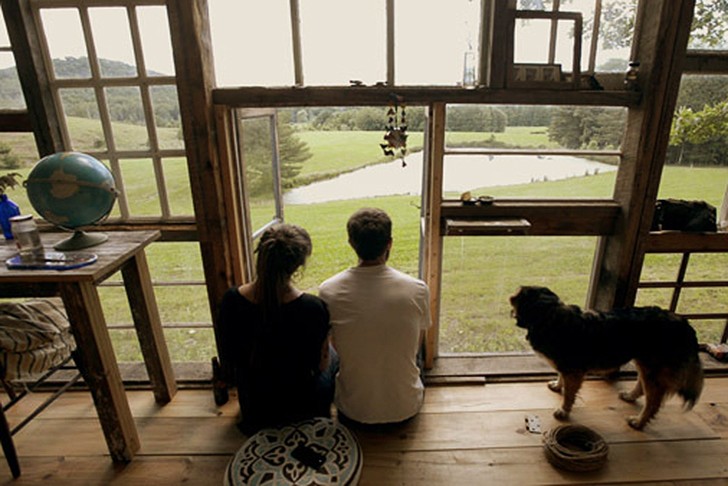 一切源于这对恋人的第一次约会,Olson带着Horwitz前往自己在西弗吉尼亚州的山野中散布。这场漫步不仅让二人的心彼此更接近,也让他们发现了一个可以仰望最美星空与夕阳的场所——而这一切并不是一个密封的屋子可以实现。最终,他们想在这里开辟一个住所,“拥有最好视野”的方式就是用窗,不需要一点墙壁。他们从车库回收处和古董商那寻找到几十扇不一样的窗子,在这里搭建起自己的住所。梦想不是遥远,而是着手去做。