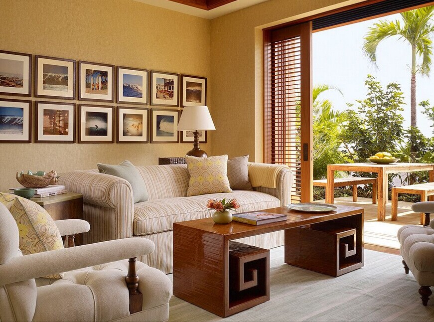 (3)挂画应控制高度,控制挂画高度是为了便于欣赏,可以根据画品的大小、类型、内容等实际情况来进行操作: