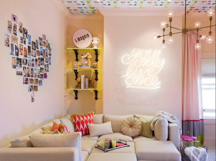 儿童房是小孩子的天地,天真无邪,充满了幻想,充满了快乐,无拘无束。儿童房色彩要明快、亮丽;选材多以动植物、漫画为主,配以卡通图案;尺寸比例不要太大,可以多挂几幅;不需要挂得太过规则,挂画的方式可以尽量活泼、自由一些。营造出一种轻松、活泼的氛围。
