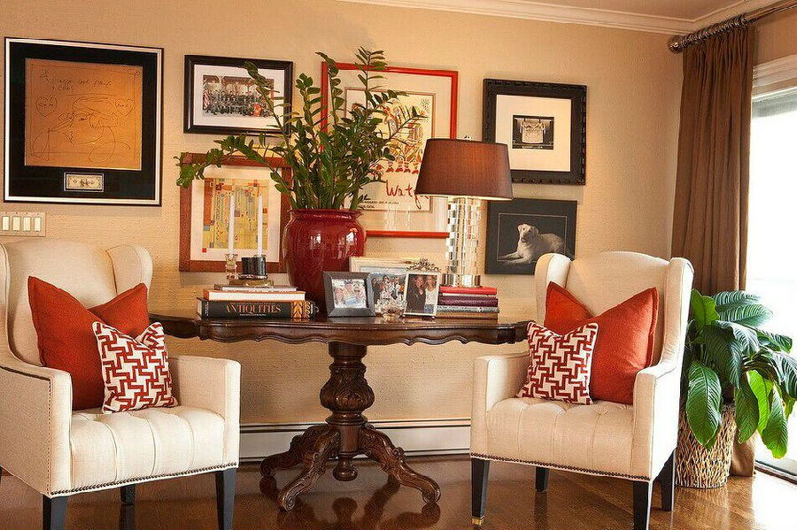 玄关、偏厅,这些地方虽然不大,却往往是客人进屋后第一眼所见之地,是第一印象的焦点,可谓“人的脸面”,这类空间的配画应该注意以下几个方面:
