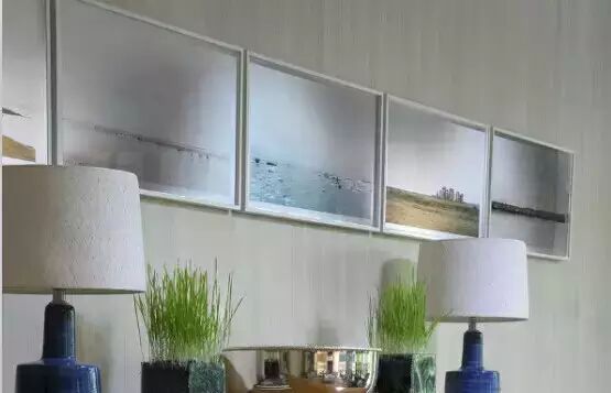 现在流行的装饰画框材质多样,有木线条、聚氨酯塑料发泡线条、金属线框等等,根据实际的需要搭配,一般星级酒店和别墅都会采用木线条画框配画,框条的颜色还可以根据画面的需要进行修饰。