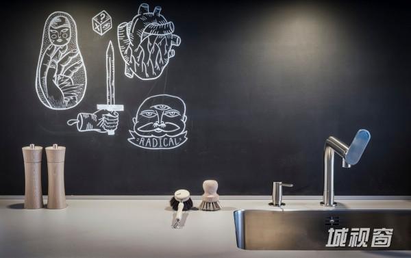 Annabell Kutucu是德国最顶级的软装大师之一,他的软装设计或清新、或艳丽、或深邃、或恬静,面对不同的用户总能打造出不同个性的空间,他为柏林Mitte区艺术家公寓打造的这个空间就带着非常明显的艺术家气质,同时又不失舒适自然的生活艺术。整个公寓大面积使用黑色,甚至屋顶和几面墙壁都没能避免,同时加入一些黑、灰色系的家具,用张扬的工业元素打造个性的工业空间。
