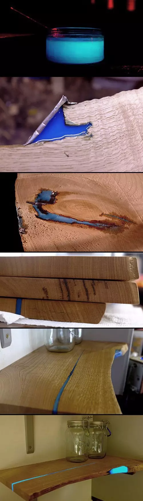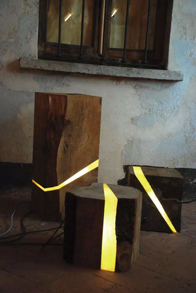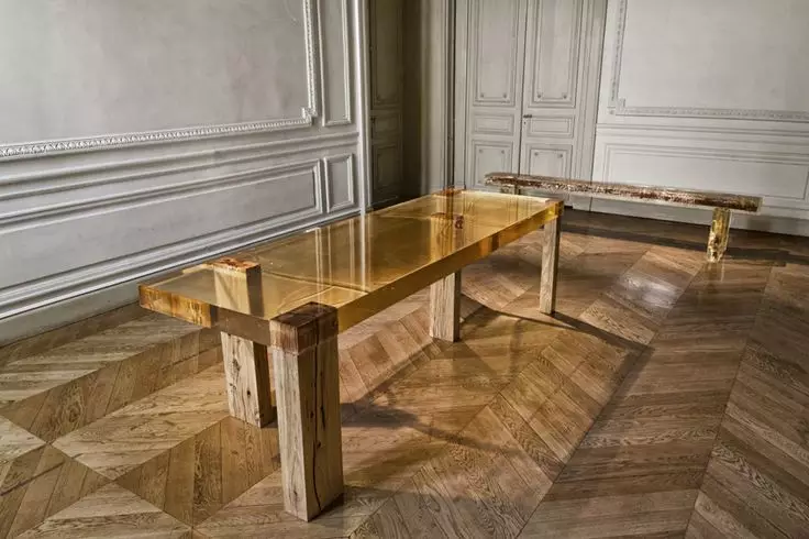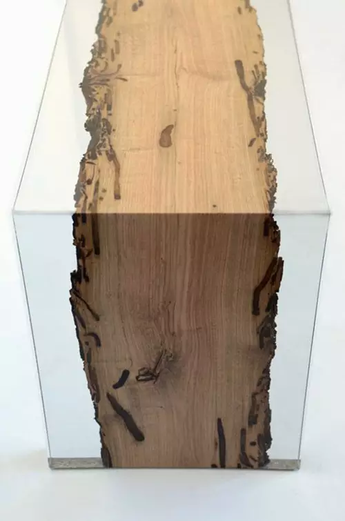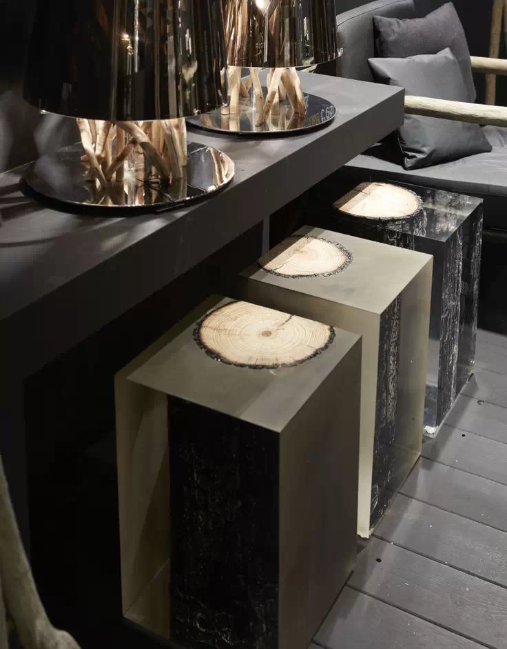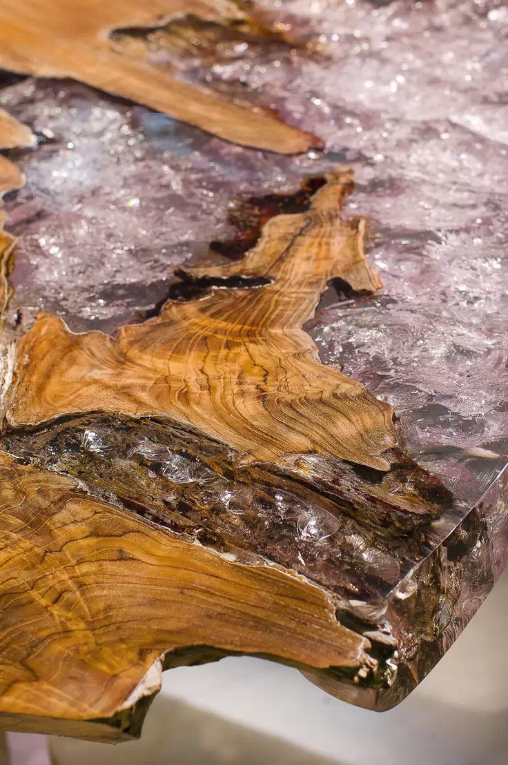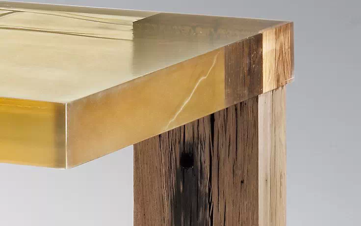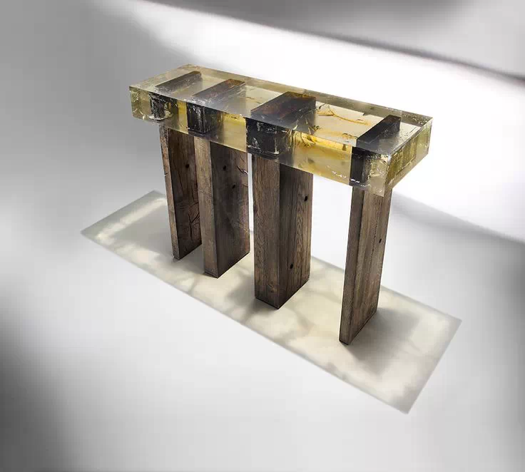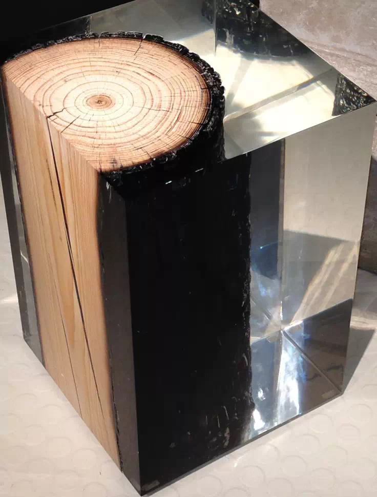 用木头和树脂创作的系列家具,充分利用了树脂可塑性的特点,作为木头的链接件,让可流动的树脂弥补残缺的木头。