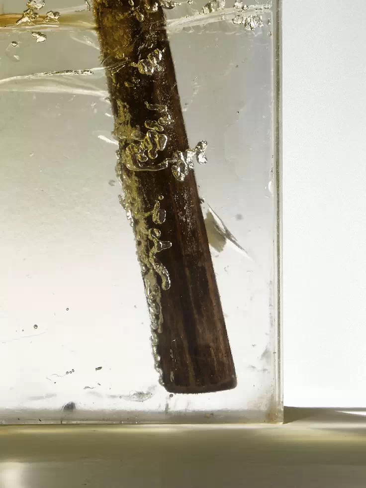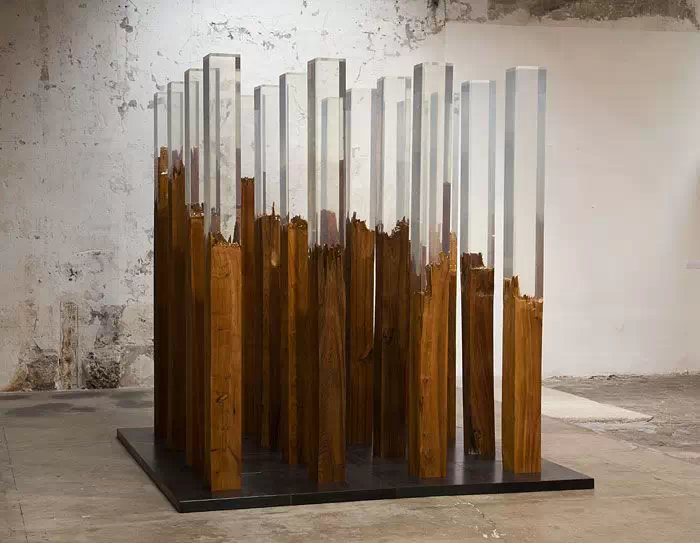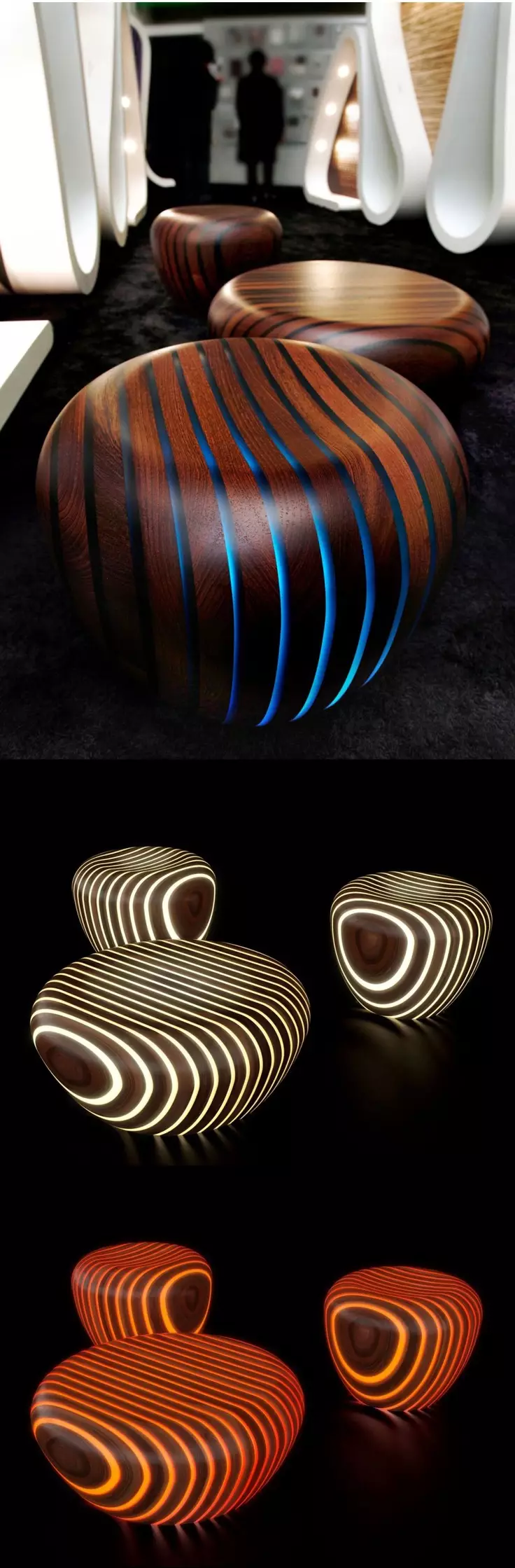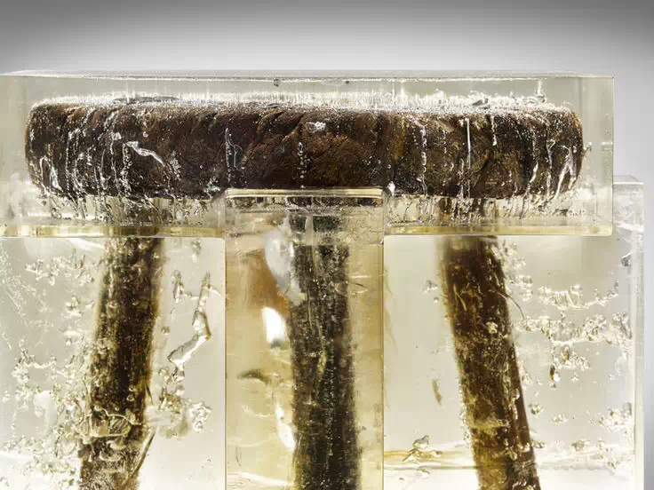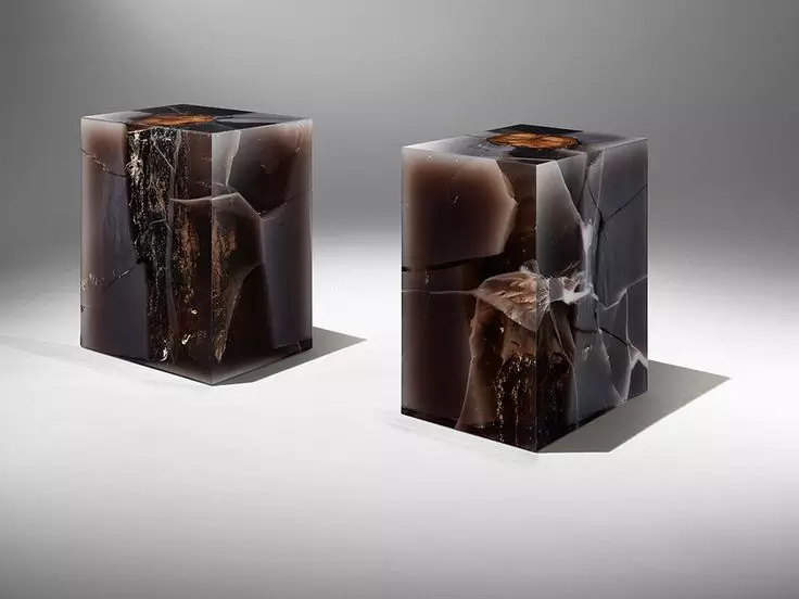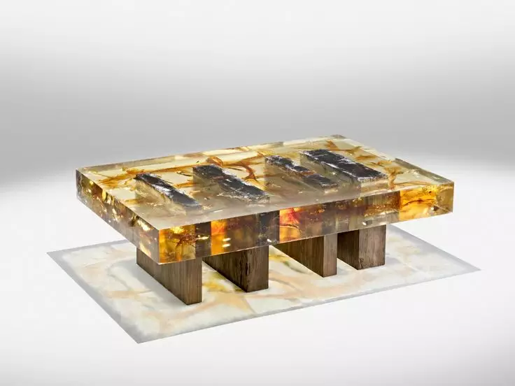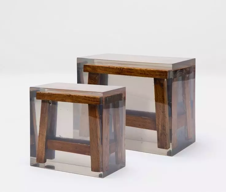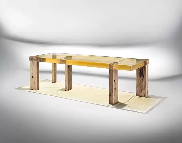 将树脂与碎木结合起来,为其加工塑形,这样的家具既有剔透的质感,又带着阳光晒过的木质气息。
