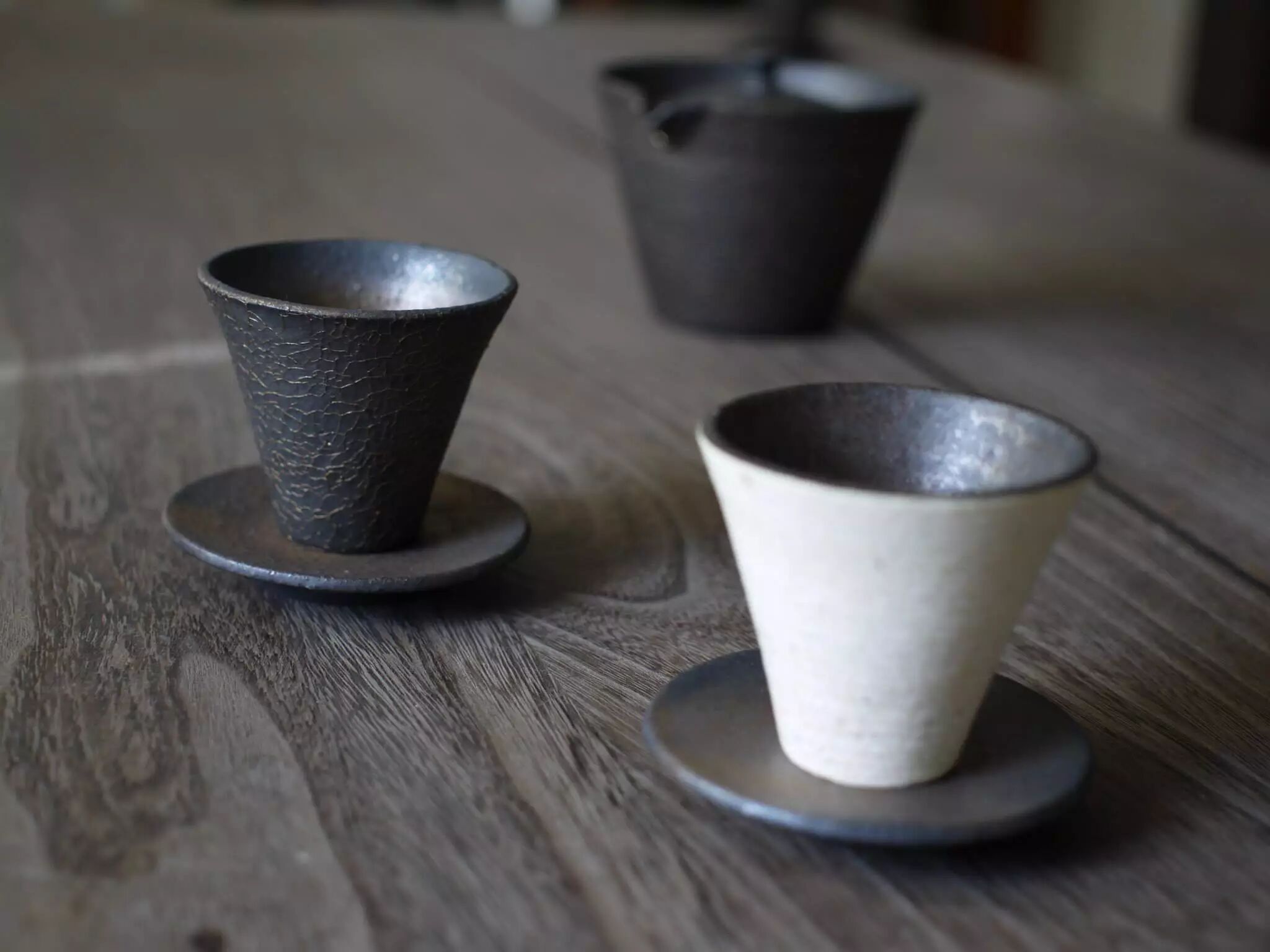 桥本忍通过日常的生活体验,把自己的情感注入到容器中,他的作品多为黑白灰的基调,忠于原有的质地和形状。一边摸索着以铁釉为中心的风格,一边进行合乎现代生活方式的日式餐具创作,他的生活多彩多样,他手下的容器却沉静如铁。