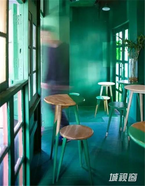 阿科米星建筑设计事务所合伙创始人、主持建筑师庄慎为旮旯空间的一角设置了一个绿色空间。他用旧门窗营造出一个深绿色的暗夜空间,放置其中的这组桌椅局部涂上了和周围空间一致的绿色,就像是宇宙星空中的小天体,一半被阳光照耀着,一般隐没在夜空里。