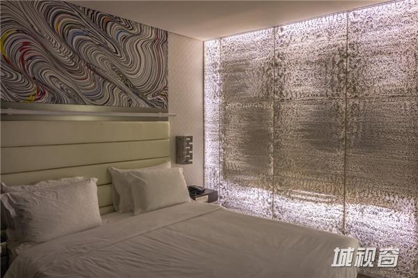 而Albert Abutov设计师将FIBROTRANS混凝土用在了客房与浴室之间,这种半开放式的隔离也正是酒店所需要的,白天阳光穿过墙壁照射到卫生间,而业务透过浴室的灯光照亮黑暗的卧室。