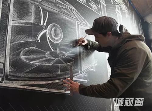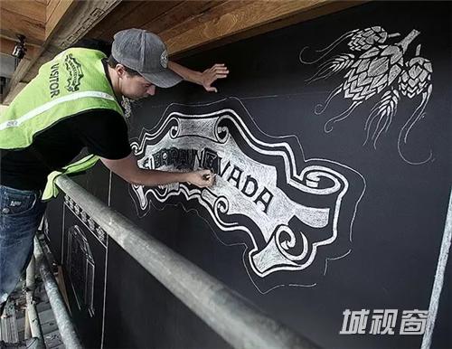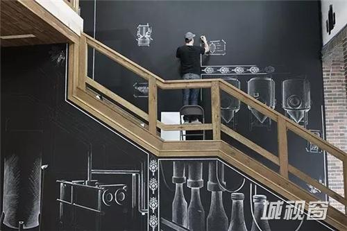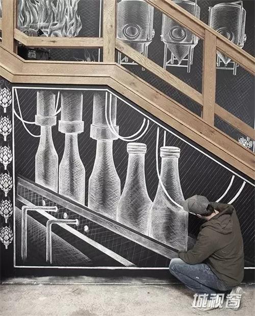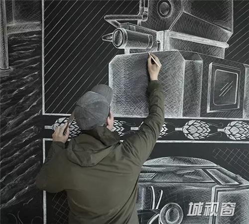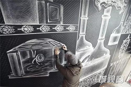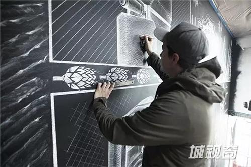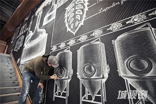 加拿大艺术家用粉笔给啤酒公司画壁画