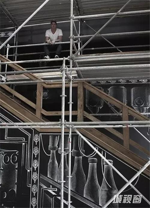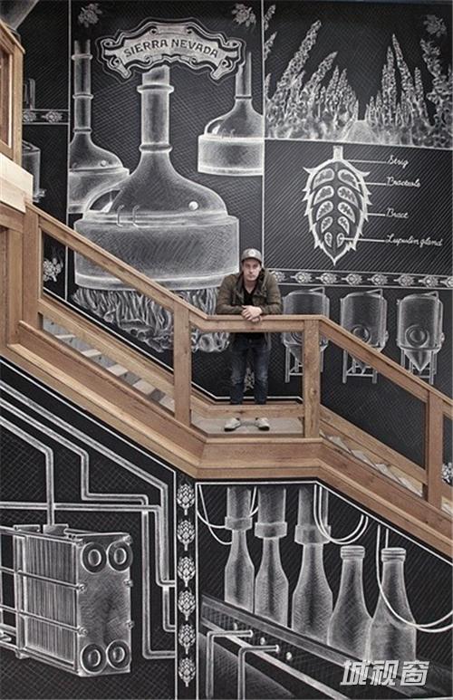 加拿大艺术家Ben Johnston,这是他为美国阿什维尔城的一家名为Sierra Nevada的啤酒公司所创作,仅使用粉笔绘制,总画幅面积1600平方英尺(约148平米),绘制周期长达3周。