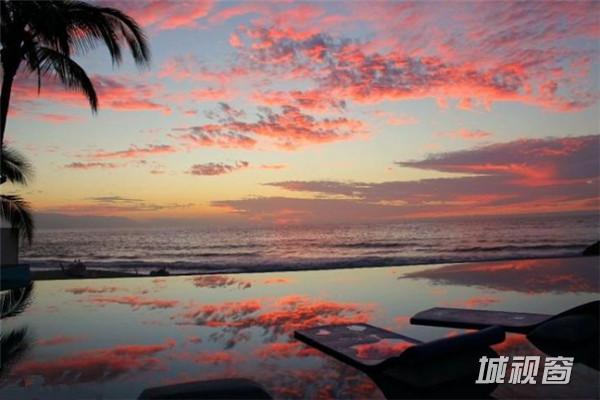 天空被夕阳染成一片浪漫的粉红,热情浪漫的度假之旅就要展开!
