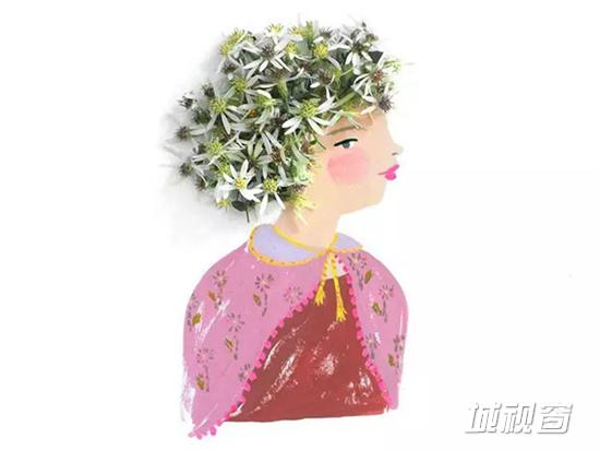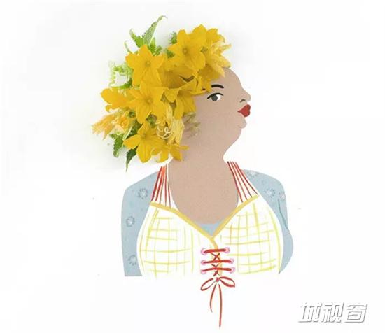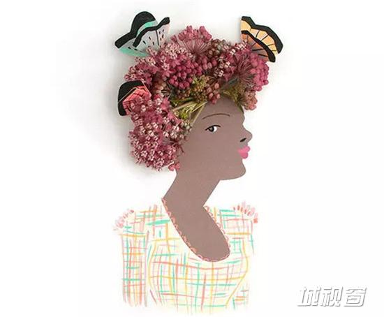 Emily Isabella是一位插画艺术家,她特别喜欢用不同的花瓣来装饰笔下的人物,根据不同人物年龄、性别、肤色、服饰及神态,使用不同的花瓣和树叶来装饰,搭配得是那么合适,以致于让人觉得这发型非Ta莫属!