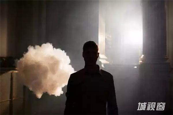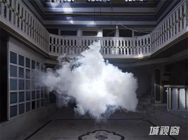 这一套极其精确的方案必须保证温度、湿度与光照都恰到好处。当一切准备就绪,斯米尔德打开机器,将房间里空气中的水蒸气凝聚起来,再辅以特殊的灯光照明,营造出转瞬即逝却伸手可触的云朵。云朵维持的时间相当短暂,只有30秒,必须马上拍摄下来,让人体会什么是真正的“浮云”。