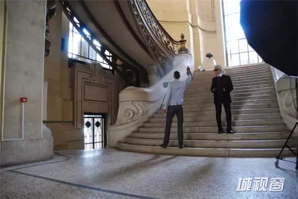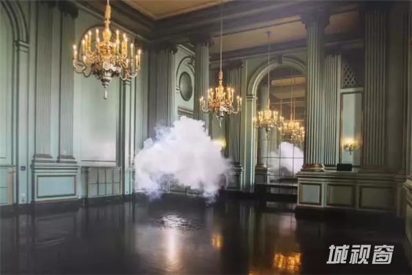 人造云得到时尚圈“凯撒大帝”老佛爷的青睐。“造云”工作中,工作人员在需要出现云朵的位置喷一些水,增加湿气。